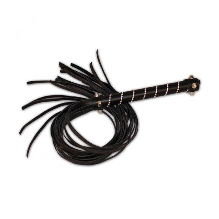 Pijnig je lover met luxe met deze schitterende zweep met strass steentjes in het zwart. De lange zweep heeft een extra lang handvat gevuld met spikes in fonkelende strass steentjes. Aan het handvat zit een polsbandje zodat jij deze luxe zweep kan ophangen bij de rest van je bdsm collectie.